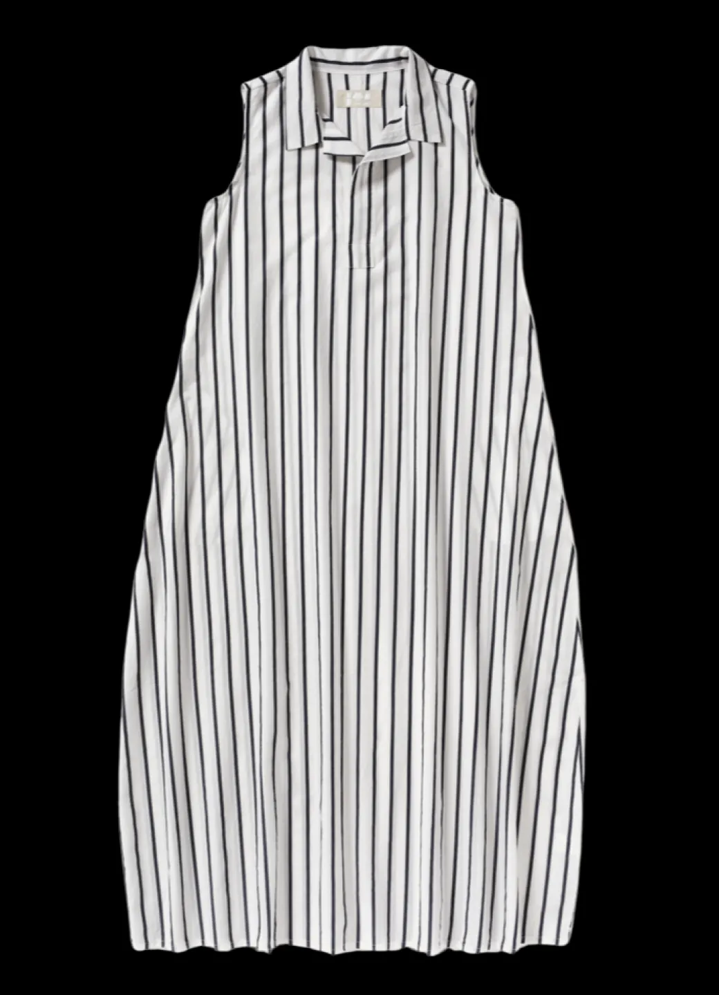 Sleeveless long dress with egg shape and polo collar in cotton poplin.