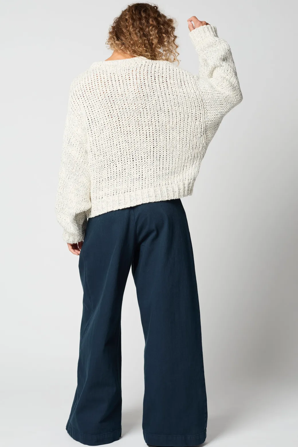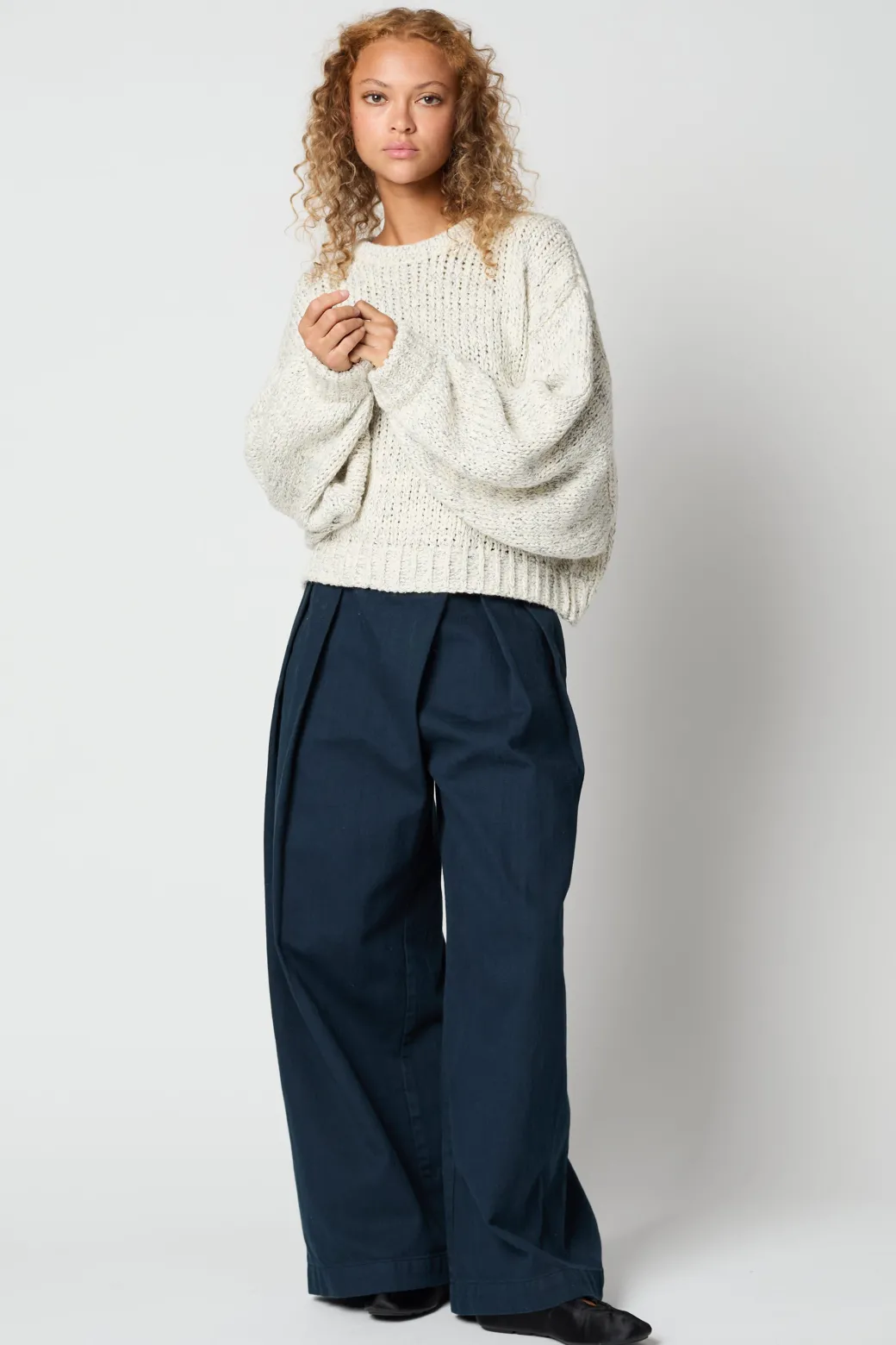 An Atelier Delphine icon in our new chunky cotton knit. The Balloon Sleeve is a cropped crewneck sweater with tapered voluminous sleeves and a relaxed body. A wardrobe staple for the Atelier Delphine woman updated in a dimensional textured cotton.
