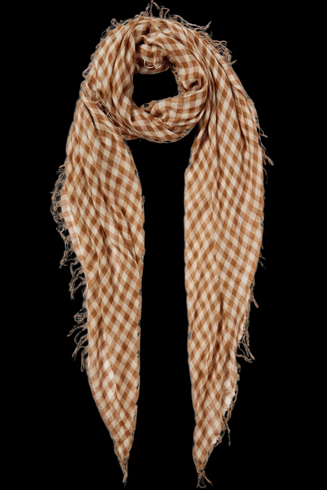 Our signature cashmere and silk blend scarf in a gingham print. This unique blend offers the warmth and softness of cashmere with the lightness of silk.