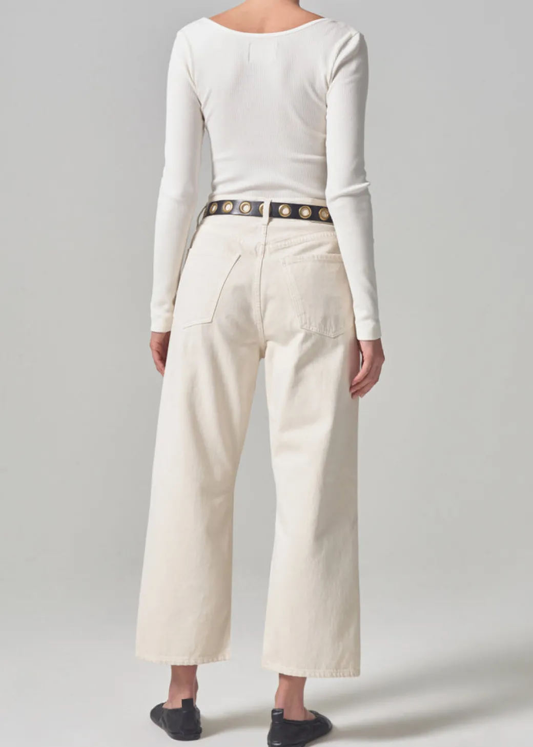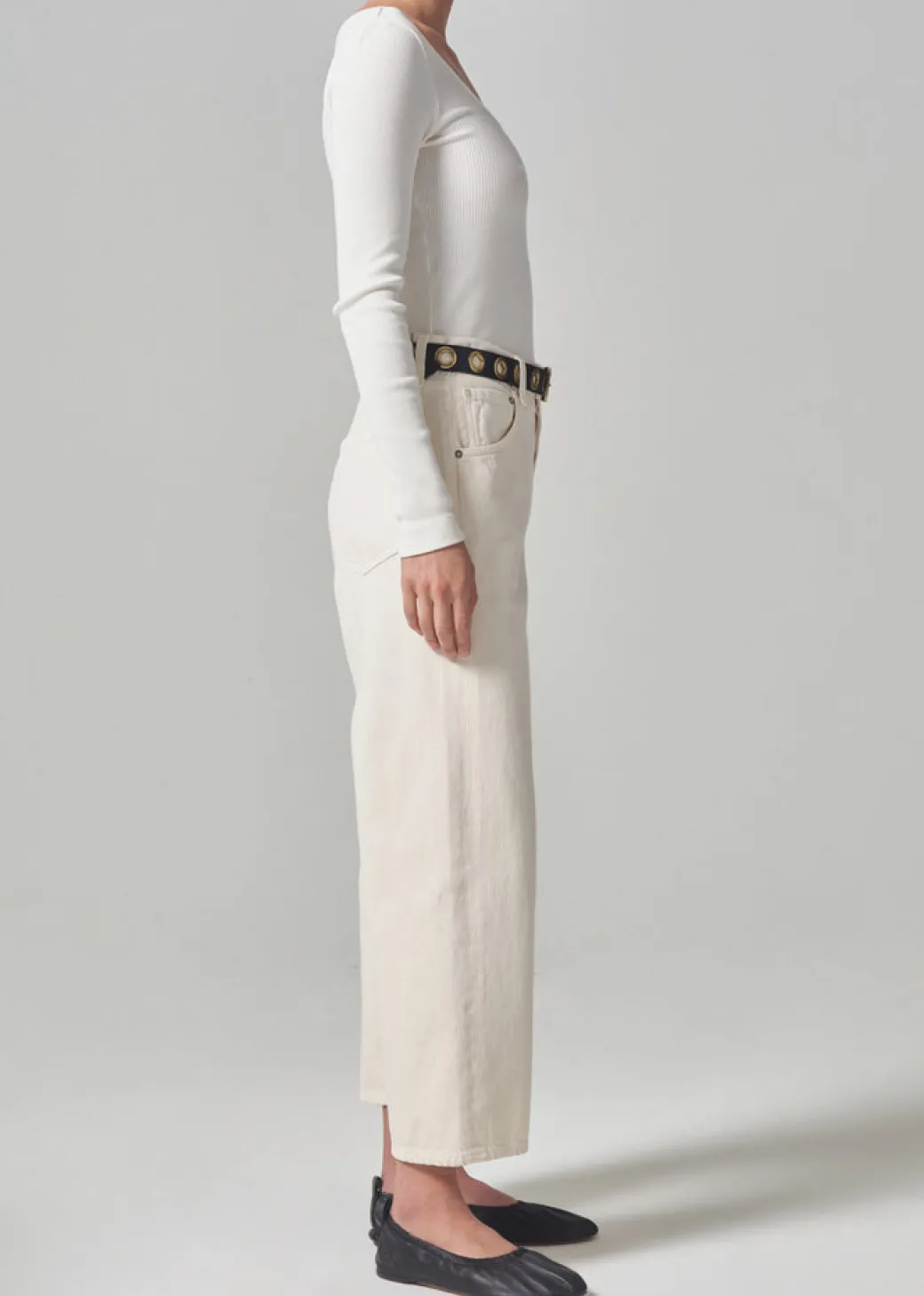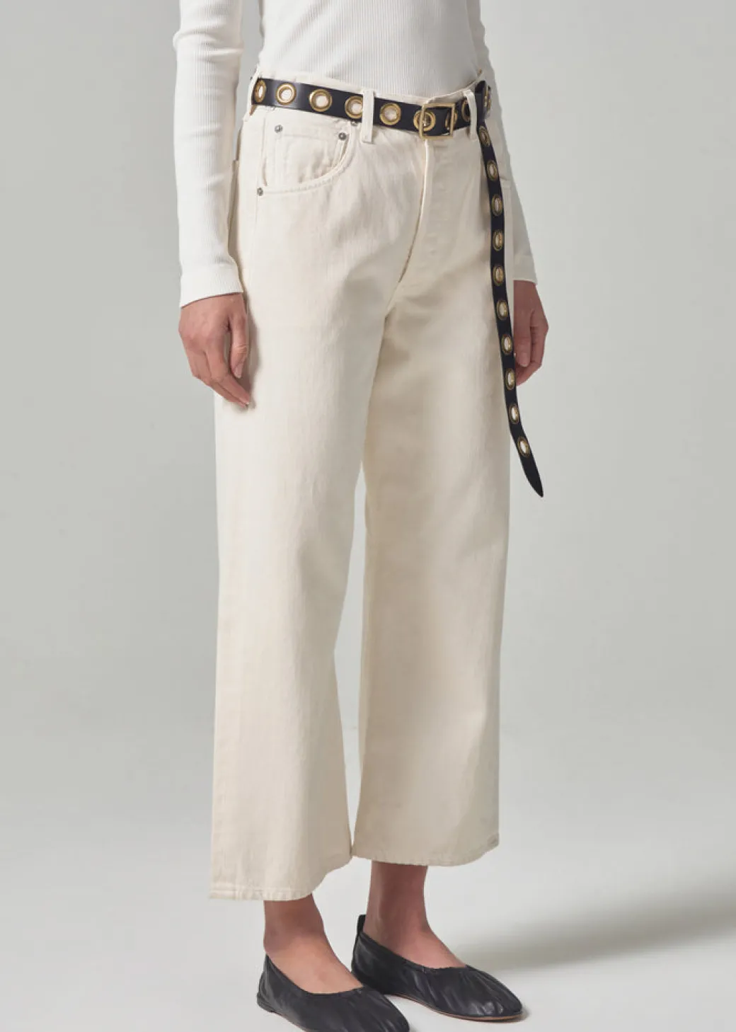 The Gaucho is a vintage inspired silhouette that sits high at the waist with an easy, relaxed top block. Cut with a cropped inseam and voluminous wide leg shape. Wear yours with a slim-fitting tee or tank to balance the shape.