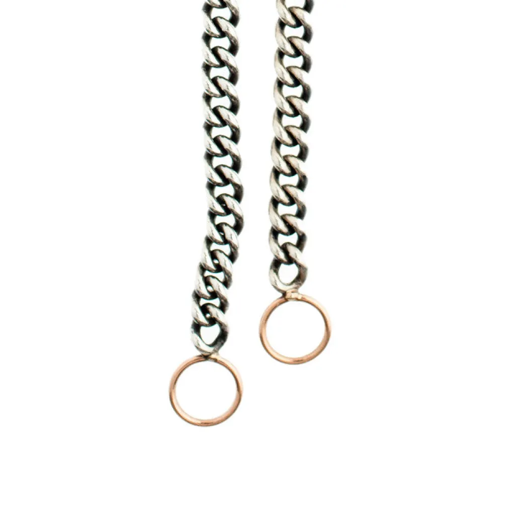 Our most popular heavy silver chain. The chain has an old-style Victorian feel because we oxidize the silver to give it that old quality. The gold loops turn a simple silver chain into something truly spectacular. Choose whether you want your loops in Rose, Yellow, or Green Gold Loops.