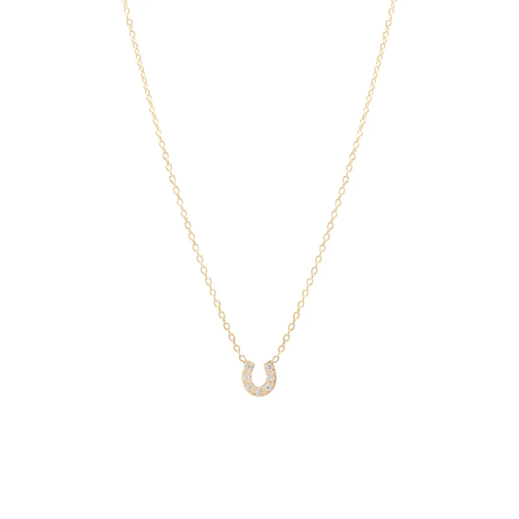 14k gold itty bitty horseshoe necklace covered with white pavé diamonds