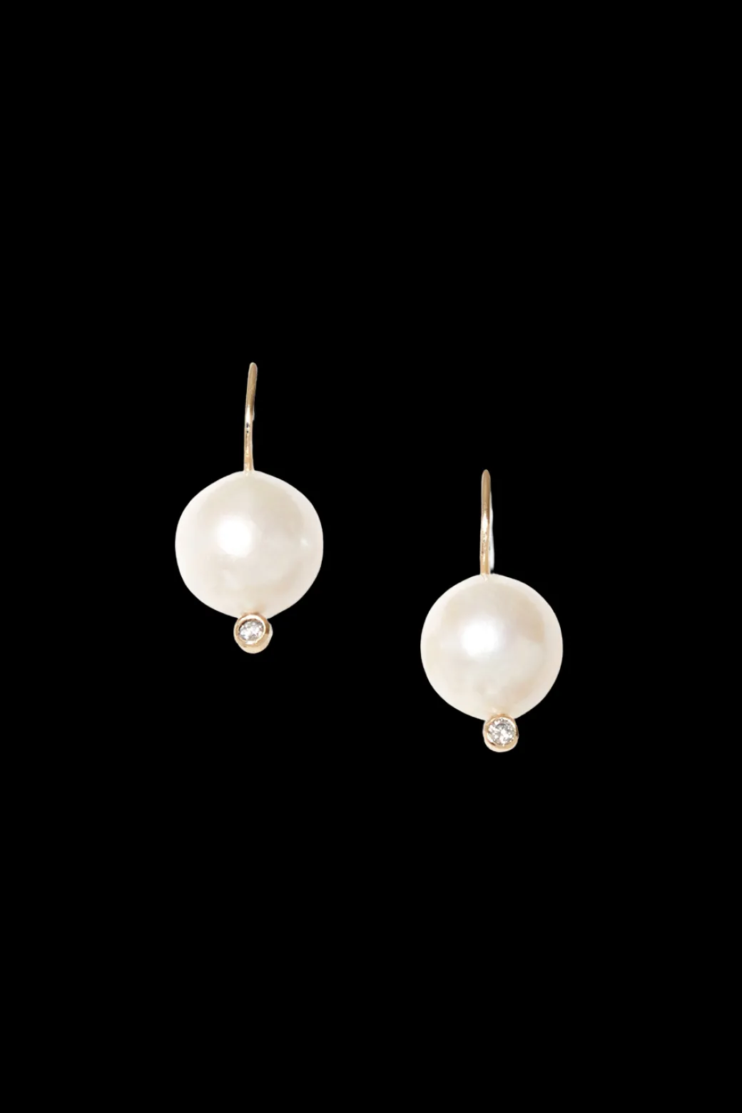 14k gold French hook earrings featuring .03ct white diamond on akoya freshwater pearl. 1in drop.