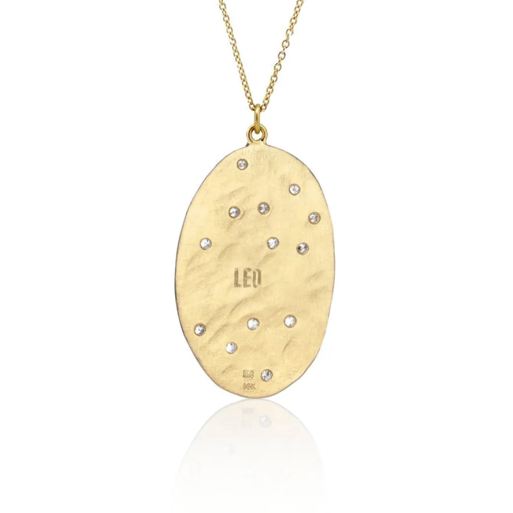 14k brushed gold Astrology necklace with 13 VS1 full cut diamonds in a constellation design with 14k gold chain.