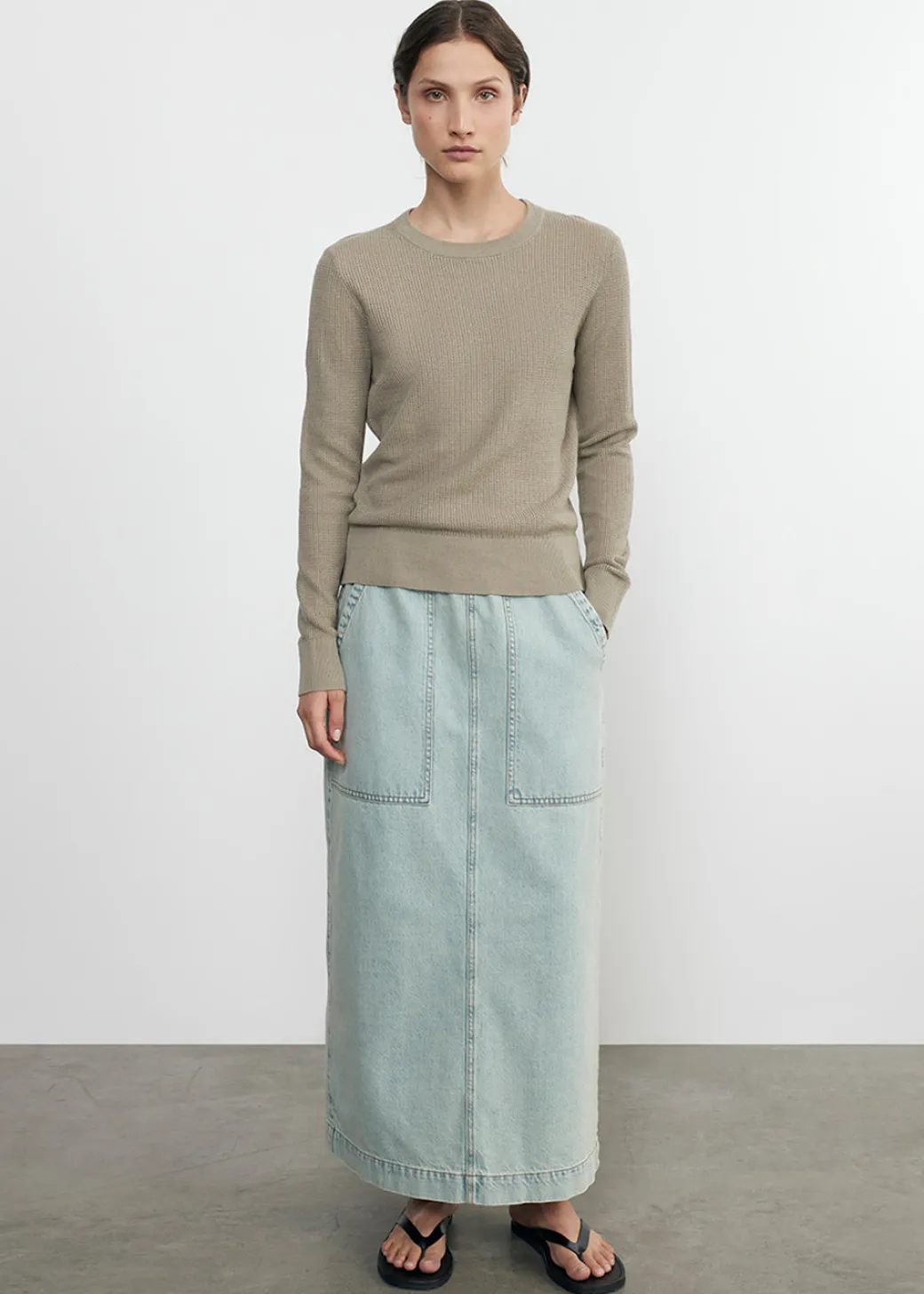 A lightweight textured sweater knit, featuring an easy fit, classic crew neckline with ribbed cuff detail. Wear this versatile piece layered or on its own.