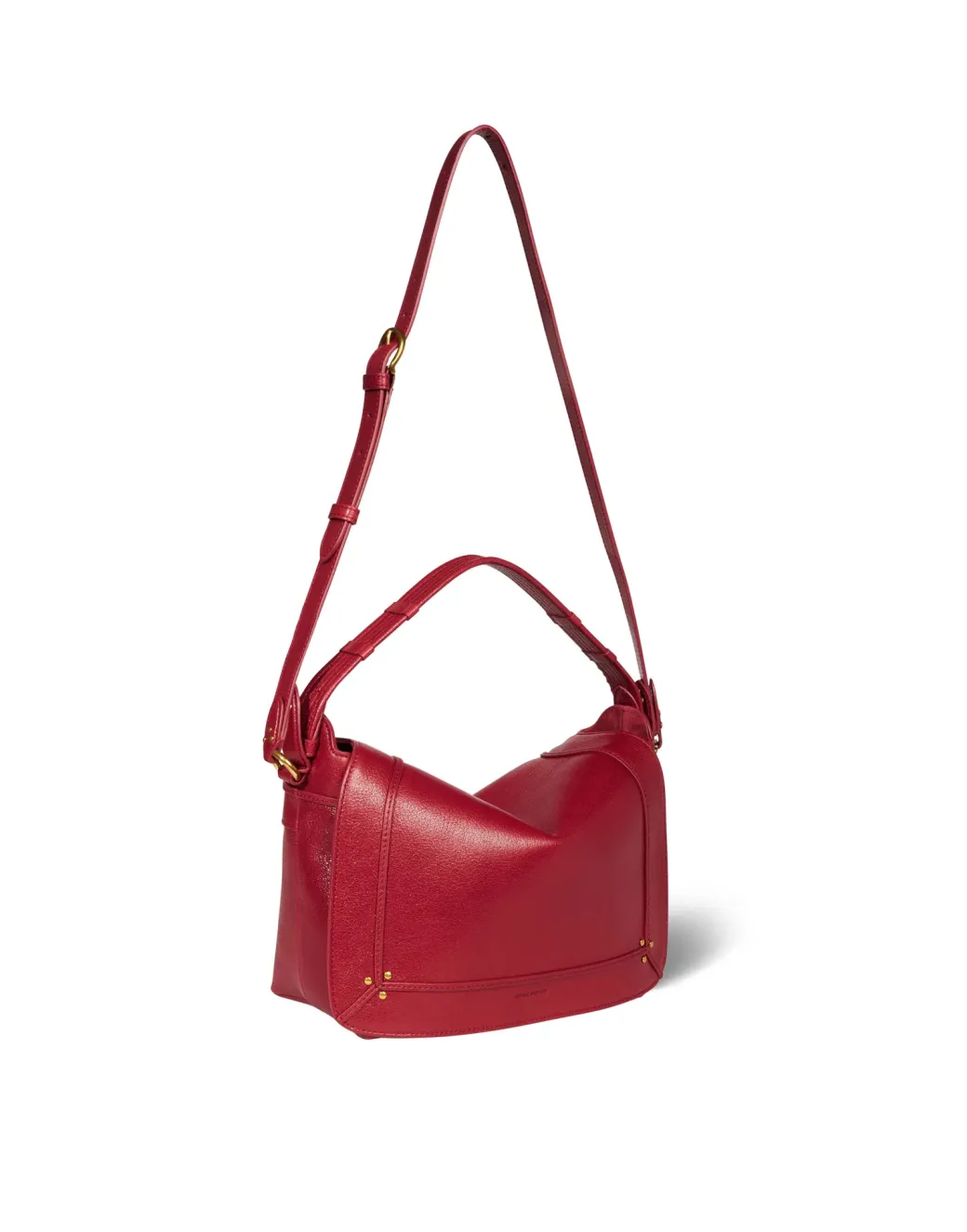 Shoulder bag, can be worn on the shoulder, crossbody, or by hand. It features a quilted leather handle and a long adjustable, removable strap. The closure is a magnetic leather flap adorned with stitched bands. A zipped exterior pocket at the back of the bag offers practical storage, while inside, an unzipped slip pocket helps organize your essentials