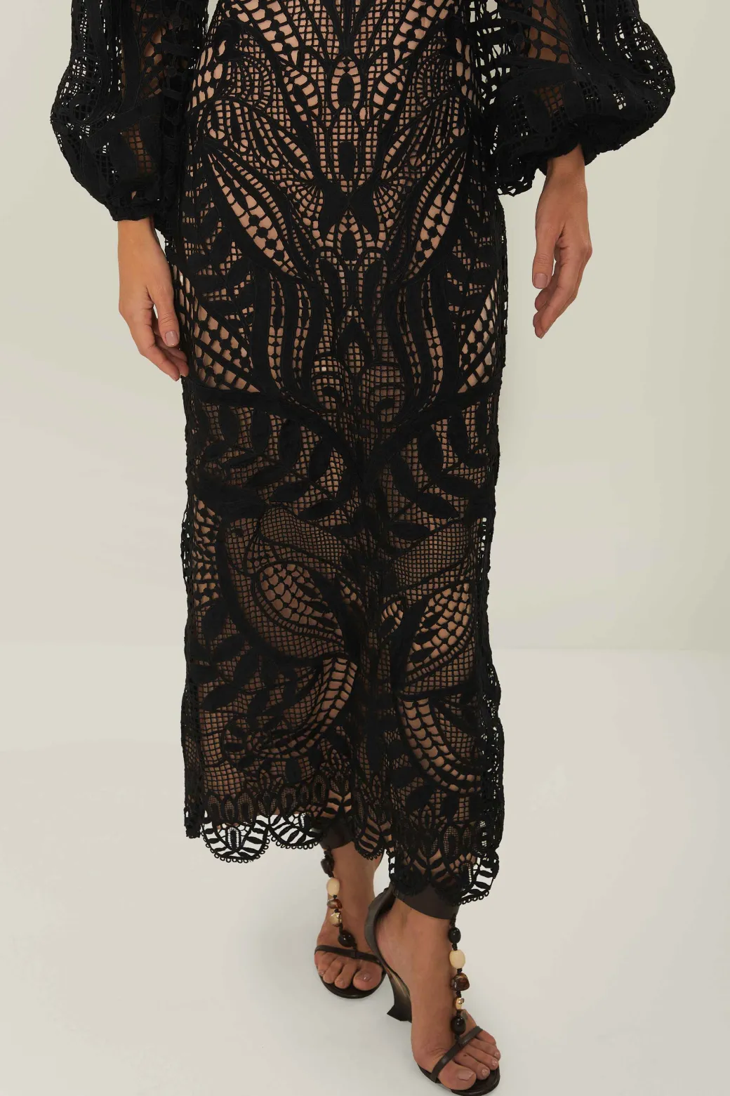 Nature Guipure Midi Dress in Black