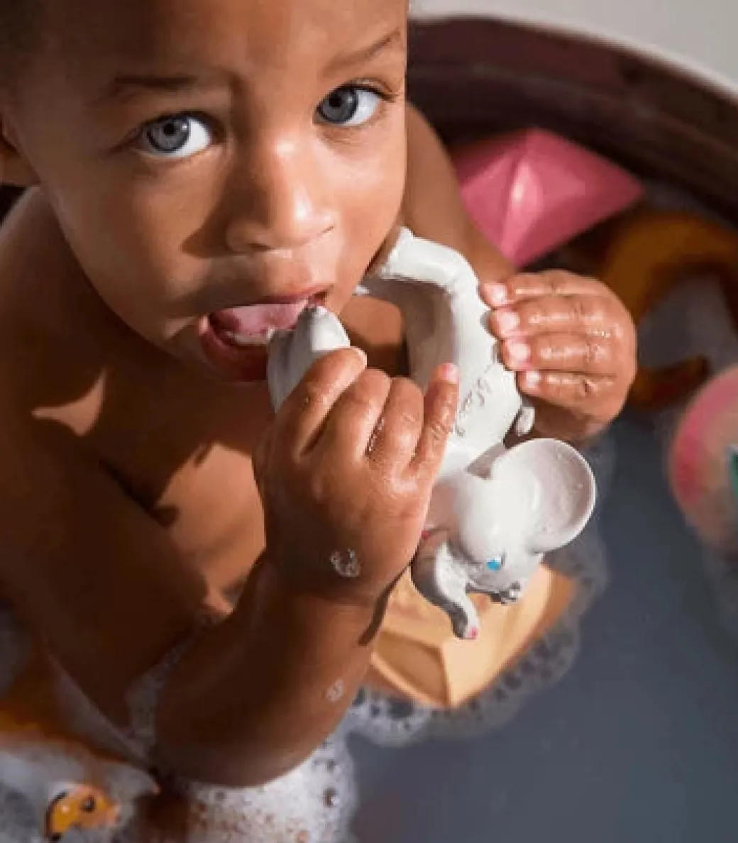 - Soft, easy to grasp and safe to chew. Stimulates baby’s senses and soothes teething gums.