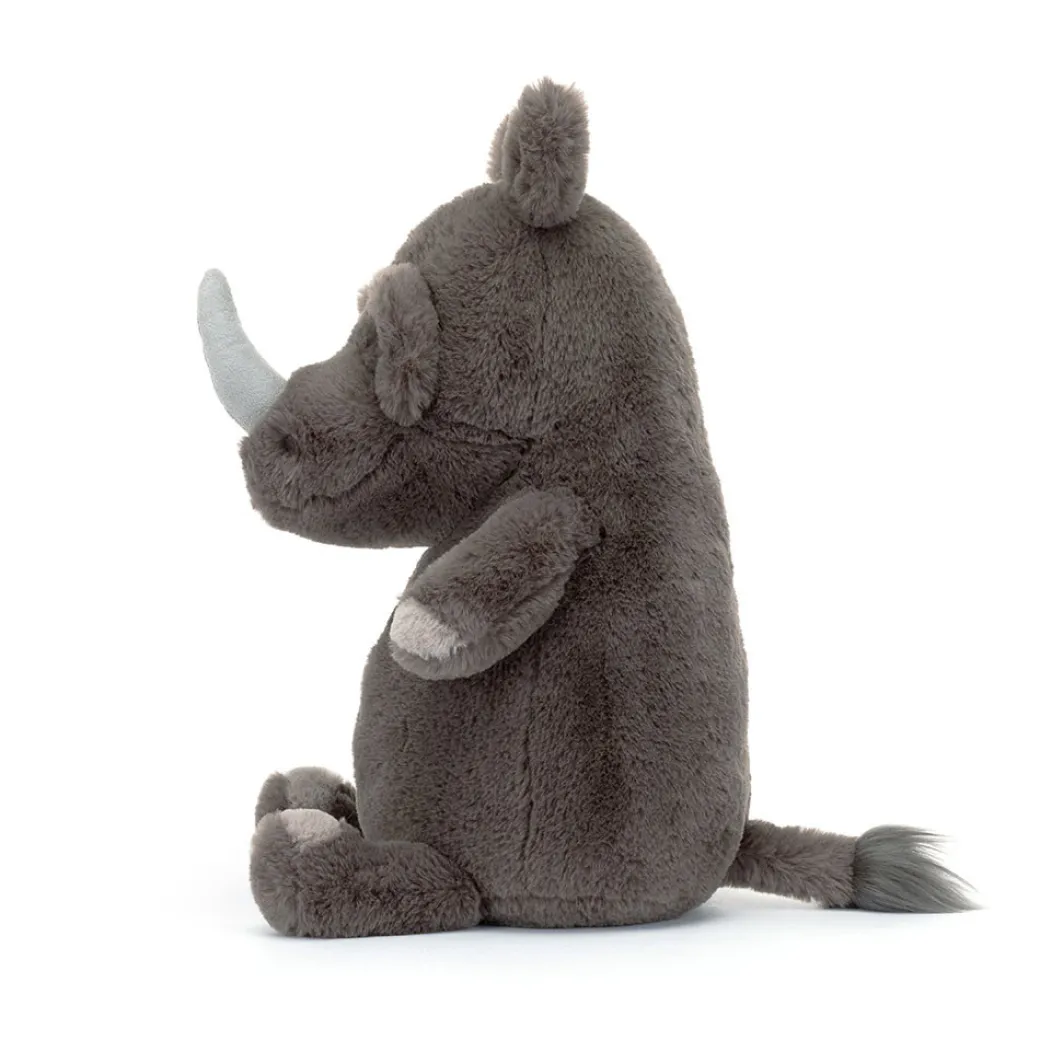 Roderick Rhinoceros is a sturdy guy and a fiercely loyal friend. This rhino is rocking a rumpled brow, petal ears and a big suedette horn. With scrumptious grey fur, a huggable tummy and a fuzzy tail with silky plume, he’s stomping about in style! Tons of texture for curious hooves.