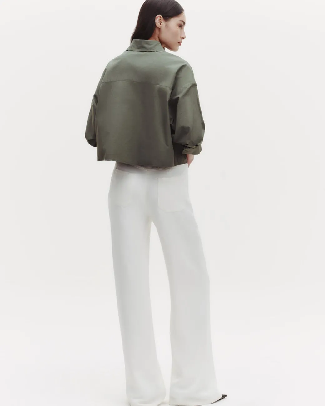 Cropped long-sleeved button-down super-fine Italian cotton shirting. The Soon To Be Ex is a boxy silhouette. Complete with an exposed button up placket, chest patch pocket and single roll button cuffs.