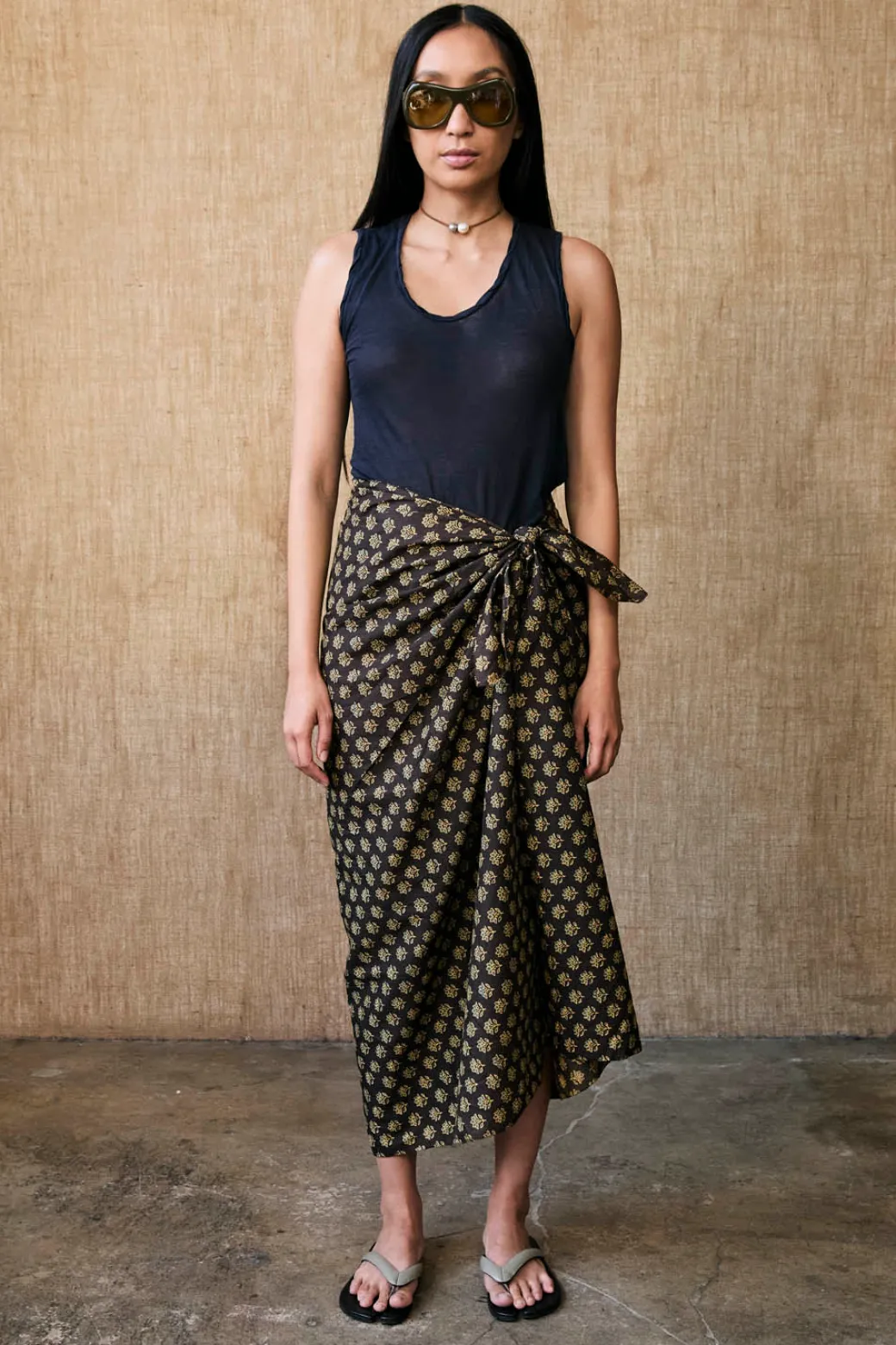 Cotton sarong with a hand block printed floral design.