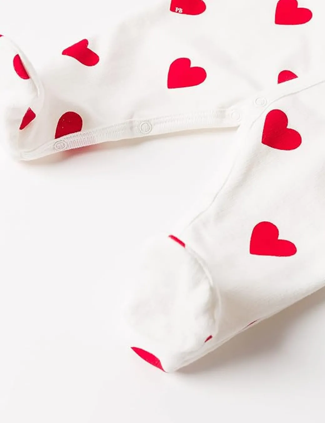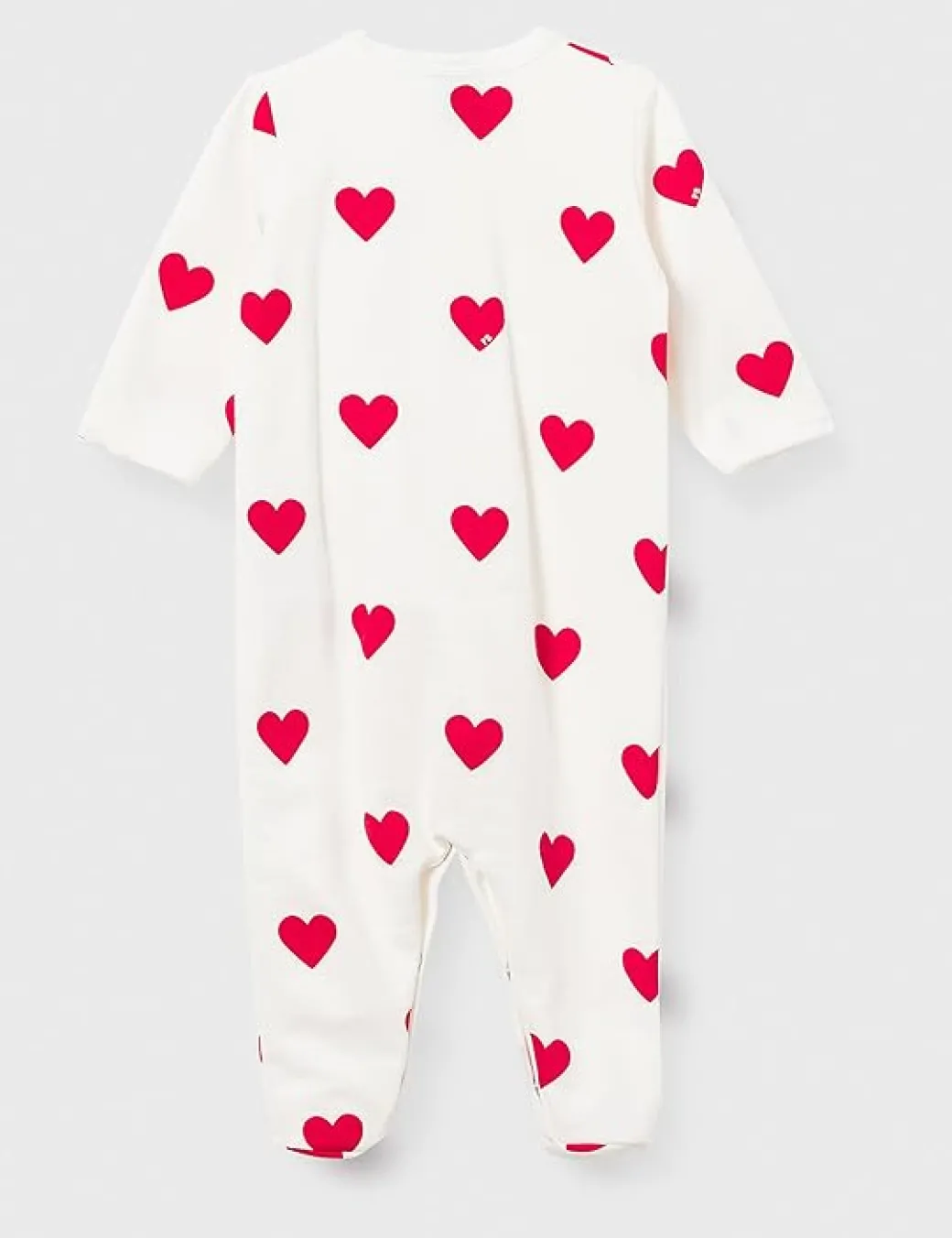 PETIT BATEAU BABIES’ GIRL RED HEARTS FOOTIE SIZES 1-3 MONTH FOOTIE MADE OF FLEECE, A WARM, SOFT MATERIAL THAT PROVIDES TOTAL FREEDOM OF MOVEMENT.
