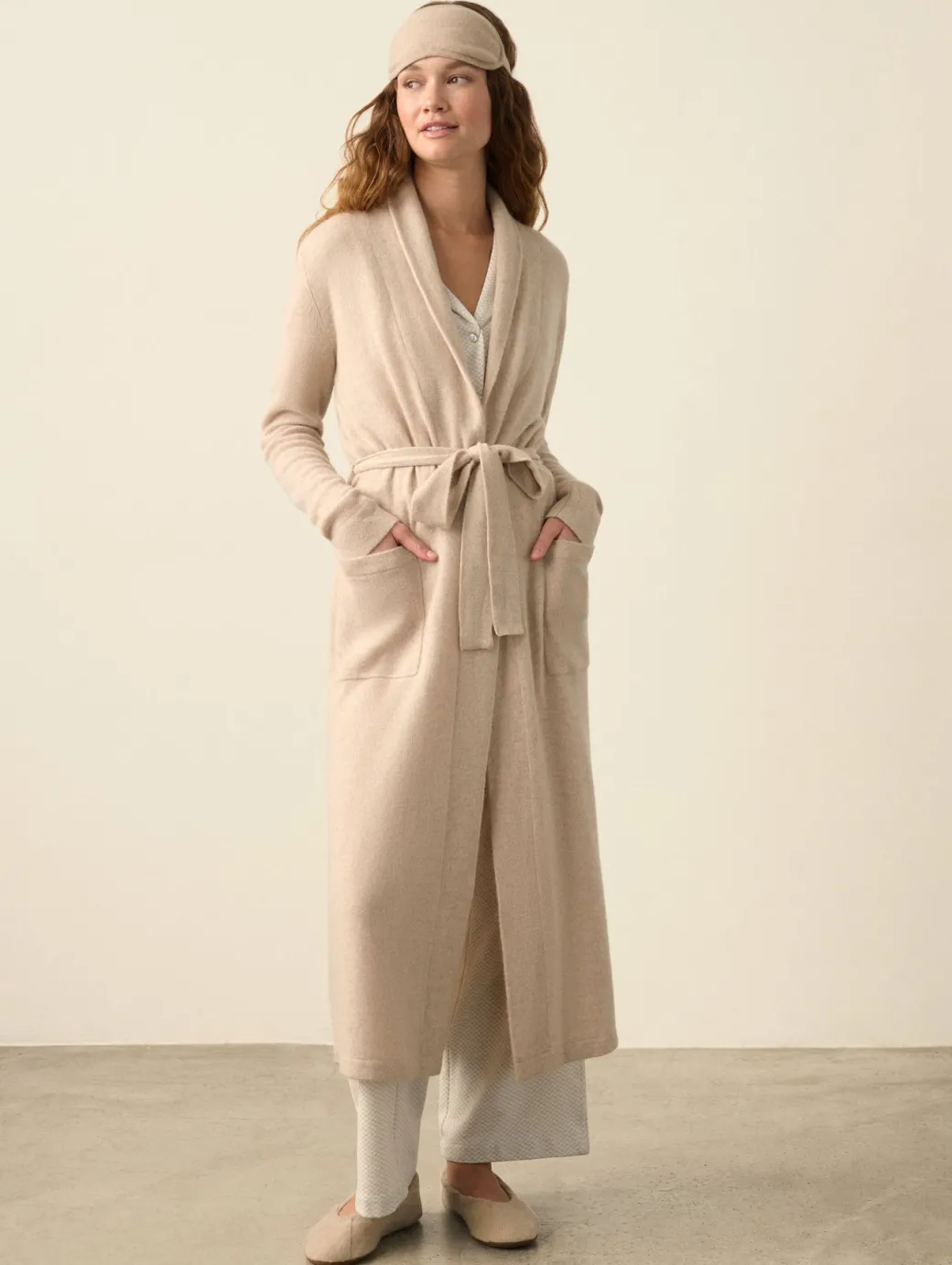 Treat your soles to the utmost in luxurious indoor accessories: ballet slippers. In our signature cashmere, they have a comfy, cushioned sole and an elasticized trim that stays put for all-day lounging. For maximum comfort, pair it with even more cashmere, like our cashmere robe and cozy-chic jogger pants.