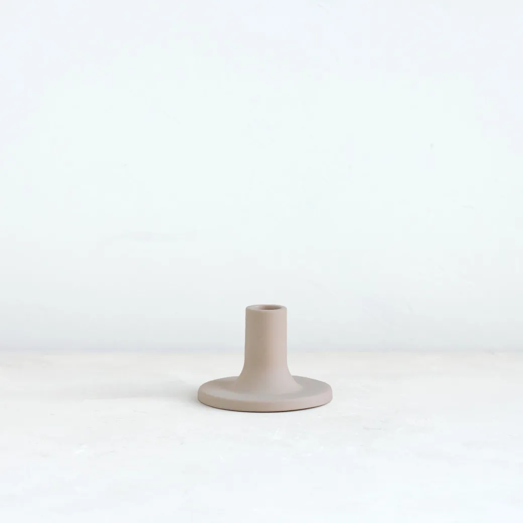 Our ceramic taper holders offer a fresh variation in shape and size and boast a clean, matte-speckled sand finish. With stand-alone appeal, they also feel dynamic as a collection. Each holder is sized to fit a standard taper candle.