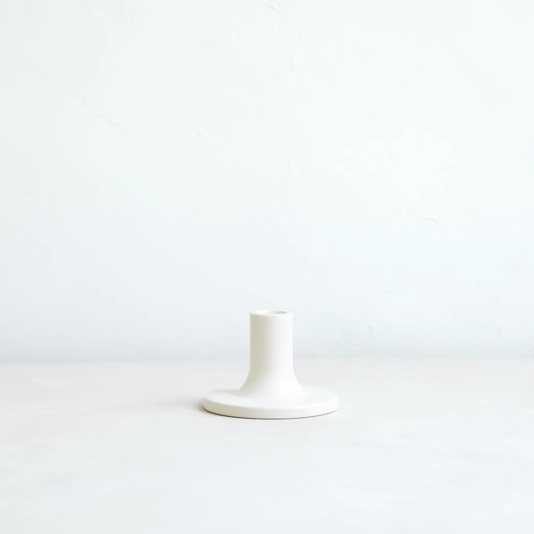 Our ceramic taper holders offer a fresh variation in shape and size and boast a clean, matte-white finish. With stand-alone appeal, they also feel dynamic as a collection. Each holder is sized to fit a standard taper candle.