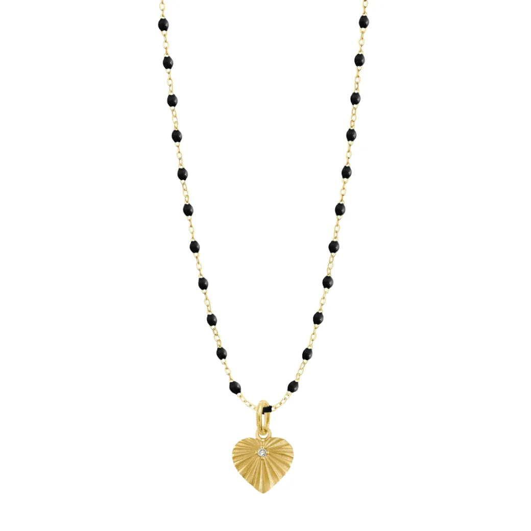 18 carat gold Heart Lumière necklace with resin pearls. 18 carat yellow gold pendant set with a diamond.