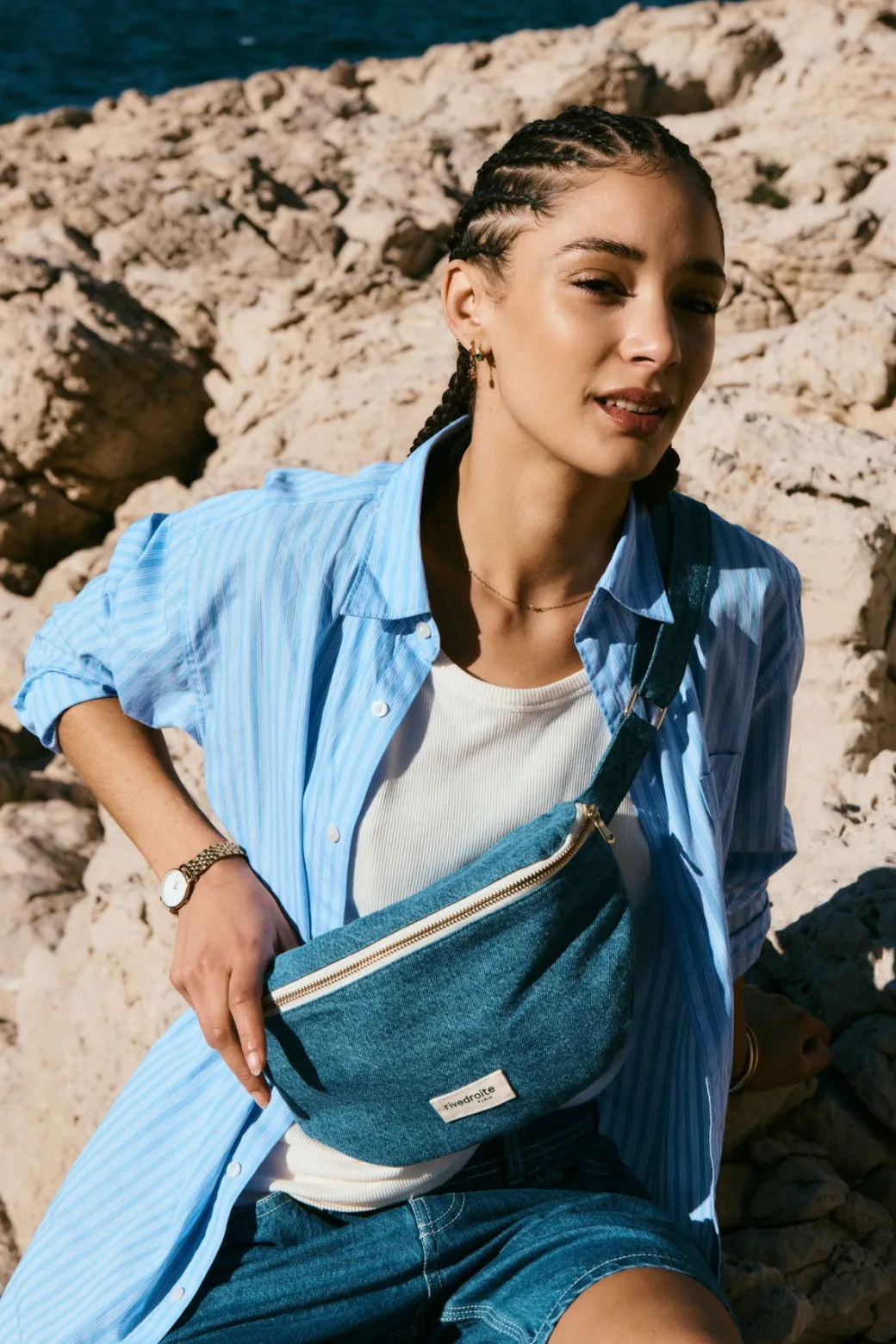 With its rounded shape, its large main compartment, Custine the fanny pack will quickly replace your handbag. Keys, wallet, phone, make-up, you can store your essentials while keeping your hands free.