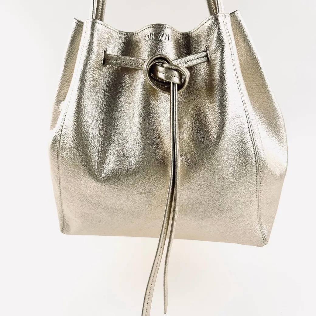 This stylish tote can be dressed up or down for day or night. It has an elegant pull tie closure along with a slip pocket outside and a slip pocket inside. It is great for everyday use as well as travel, work, school, or a weekend away. Consider adding an ORSYN Pouch and you are ready for an adventure.