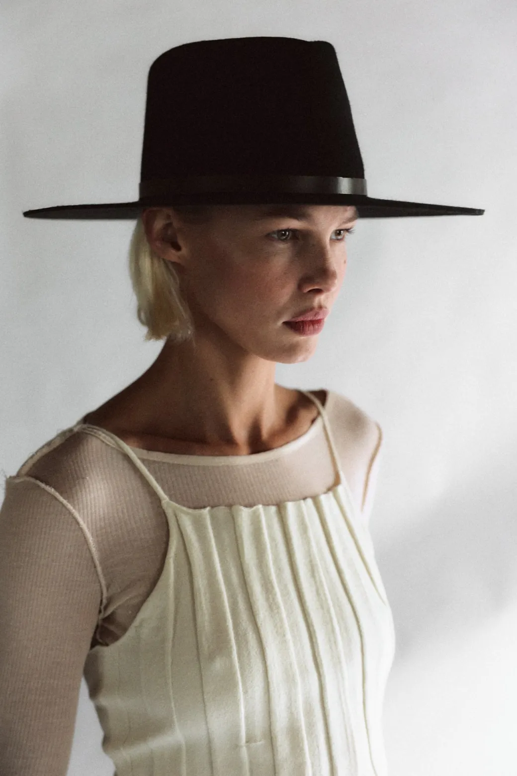 Structured wool fedora featuring a tall crown | 1.5 Regenerative Leather Band | Logo Screw Closure