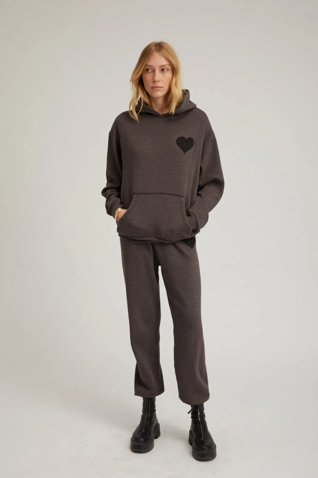 A cult favorite designed for a relaxed fit, made from a blend of plush cotton-fleece for an ultra-soft feel, with the perfect stretch and wearability. This classic hoodie is printed with our signature heart logo and hosts a kangaroo pocket for a chic, yet casual look, to enjoy any season. For the full look, wear with the matching heart sweatpants.