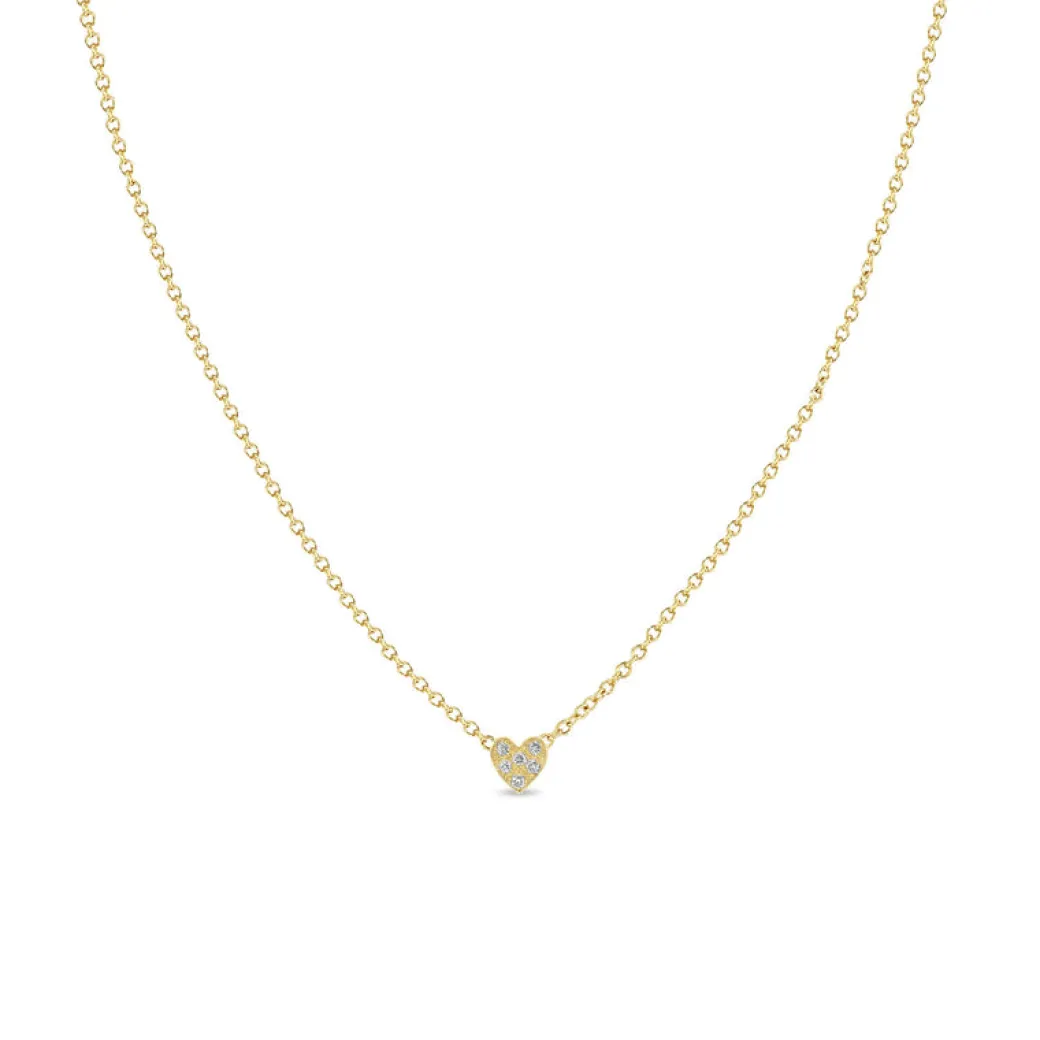 14k gold itty bitty heart necklace covered with white pave diamonds