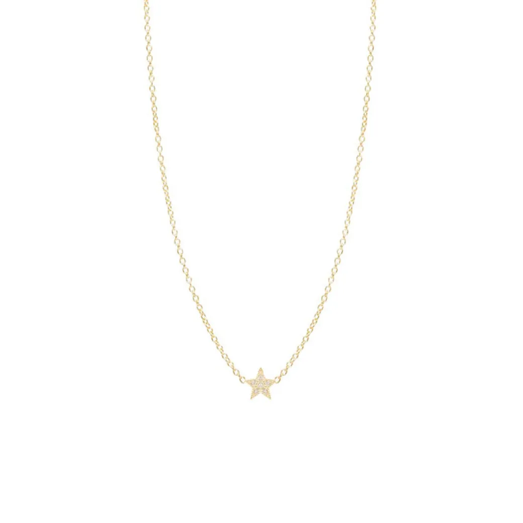 14k gold itty bitty star necklace covered with white pave diamonds