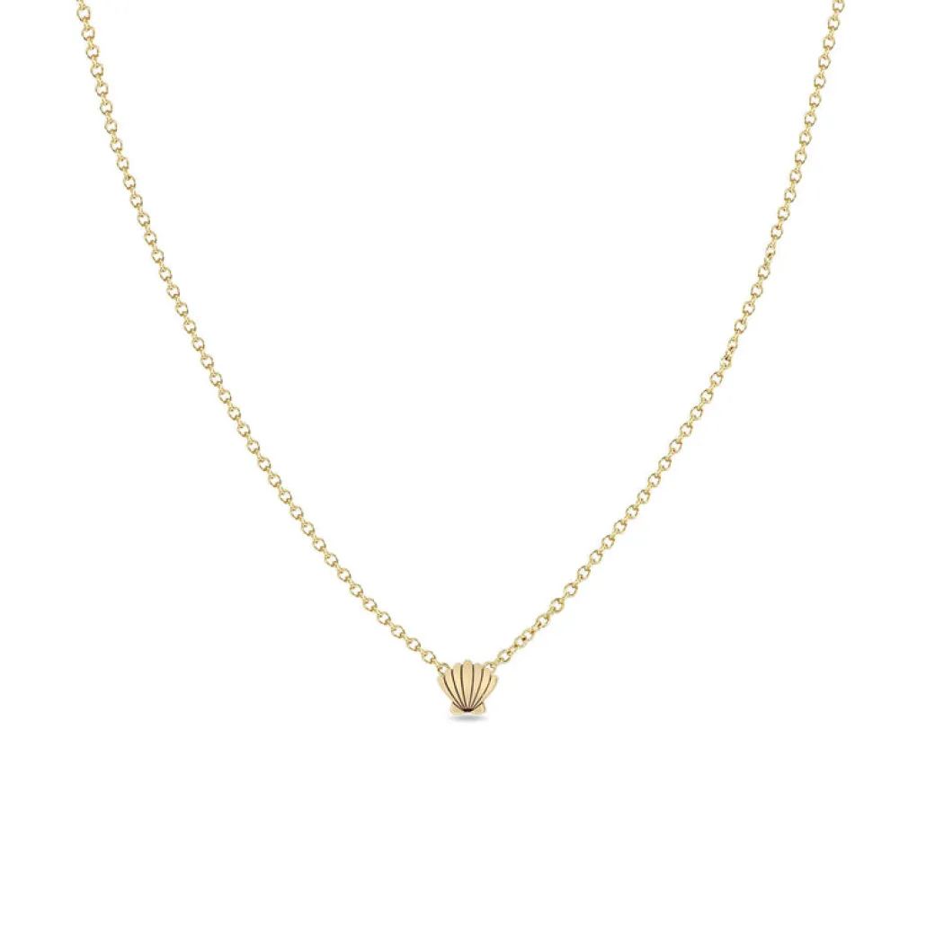 14k gold cable chain necklace with an itty bitty engraved seashell