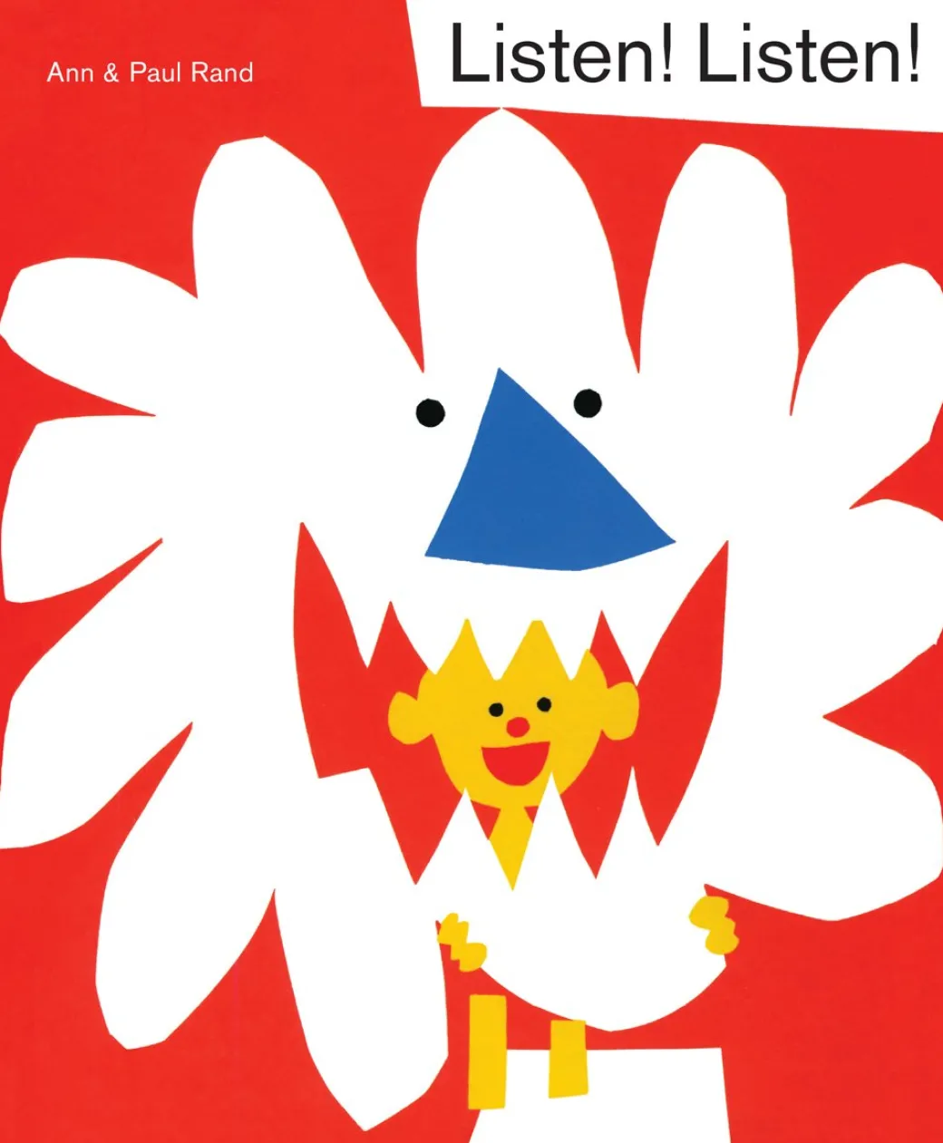 Paul Rand and his wife, Ann, wrote this book for their daughter, Catherine, to explain the interplay of sound and color. Paul’s distinctive papercut illustrations of bold shapes and bursts of color beautifully complement Ann’s rhythmic text, encouraging children to listen and repeat noises they hear every day: the “blop” of a raindrop, the “wham!” of a shutting door, the whisper of the wind in the trees, and the “crunch crunch” of buttered toast.