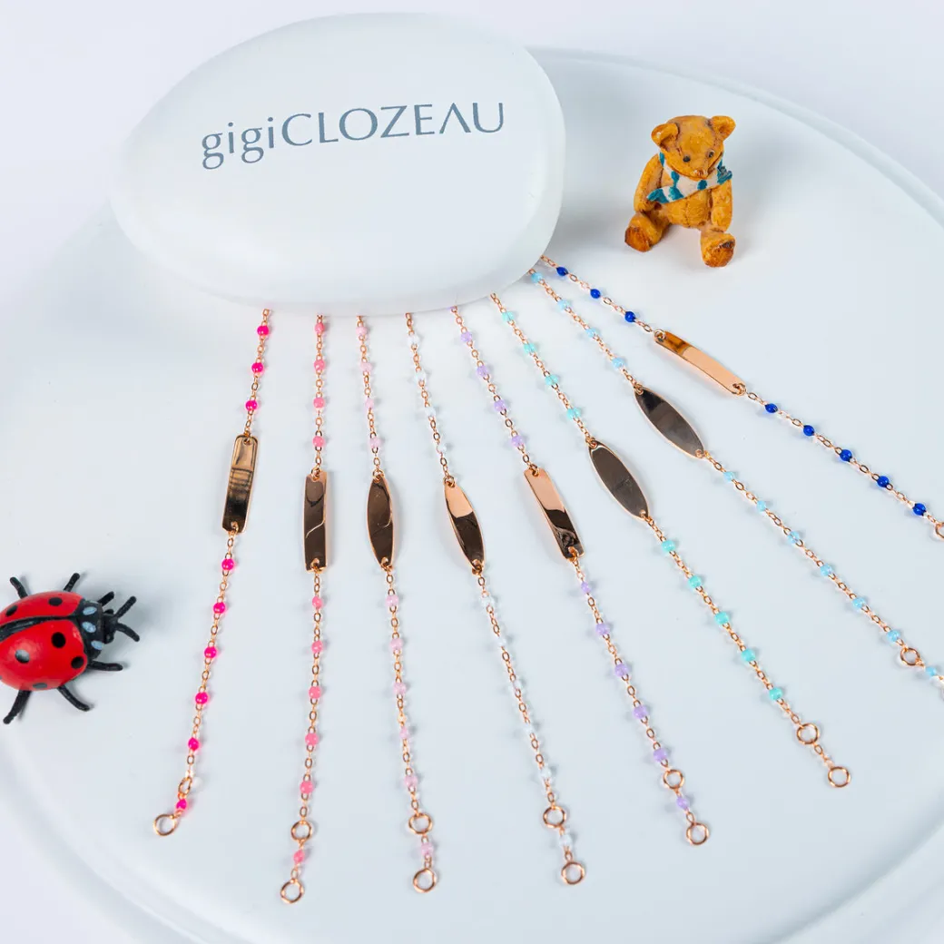 gigi CLOZEAU baby bracelet with resin beads, 18 carat yellow gold, and a oval plaque that can be engraved.