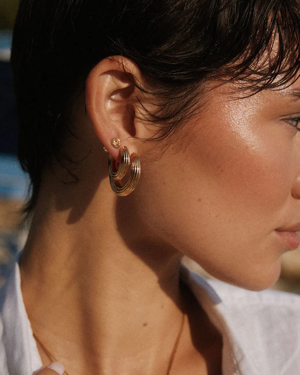 Pair of mini ridged hinge hoops from our Spring 2025 Collection