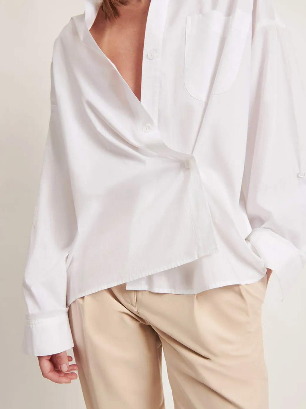 Goodbye, Earl. The Earl is our twist on an oversized button down. Style it buttoned down or to the side with an alternative side button detail. Featuring the TWP signature sleeve ‚ wide or tapered cuffs. Cut in superfine Italian Cotton.