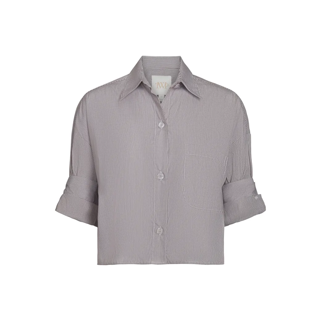 Cropped, short sleeved button down in striped Italian cotton shirting. The Next Ex is a boxy silhouette. Complete with a chest patch pocket, button up placket, spread collar, and our signature double roll button cuffs.