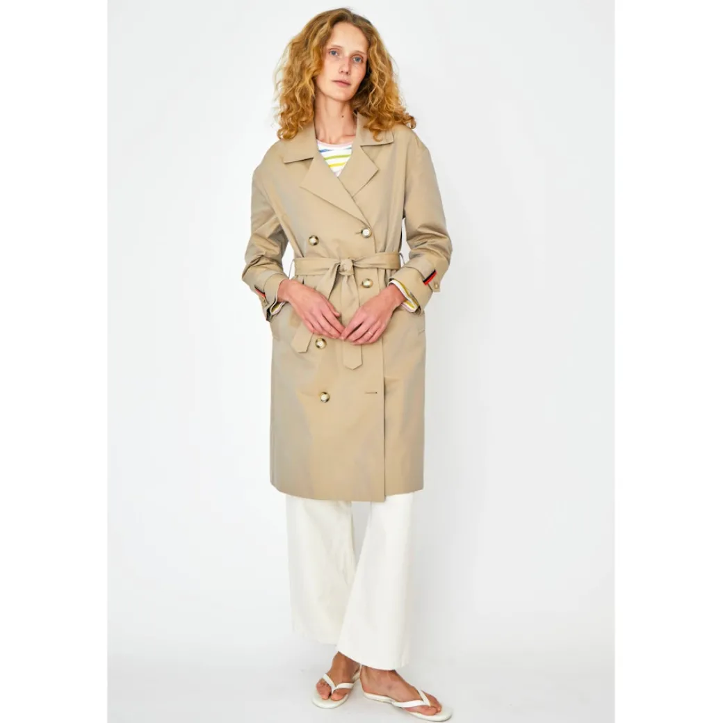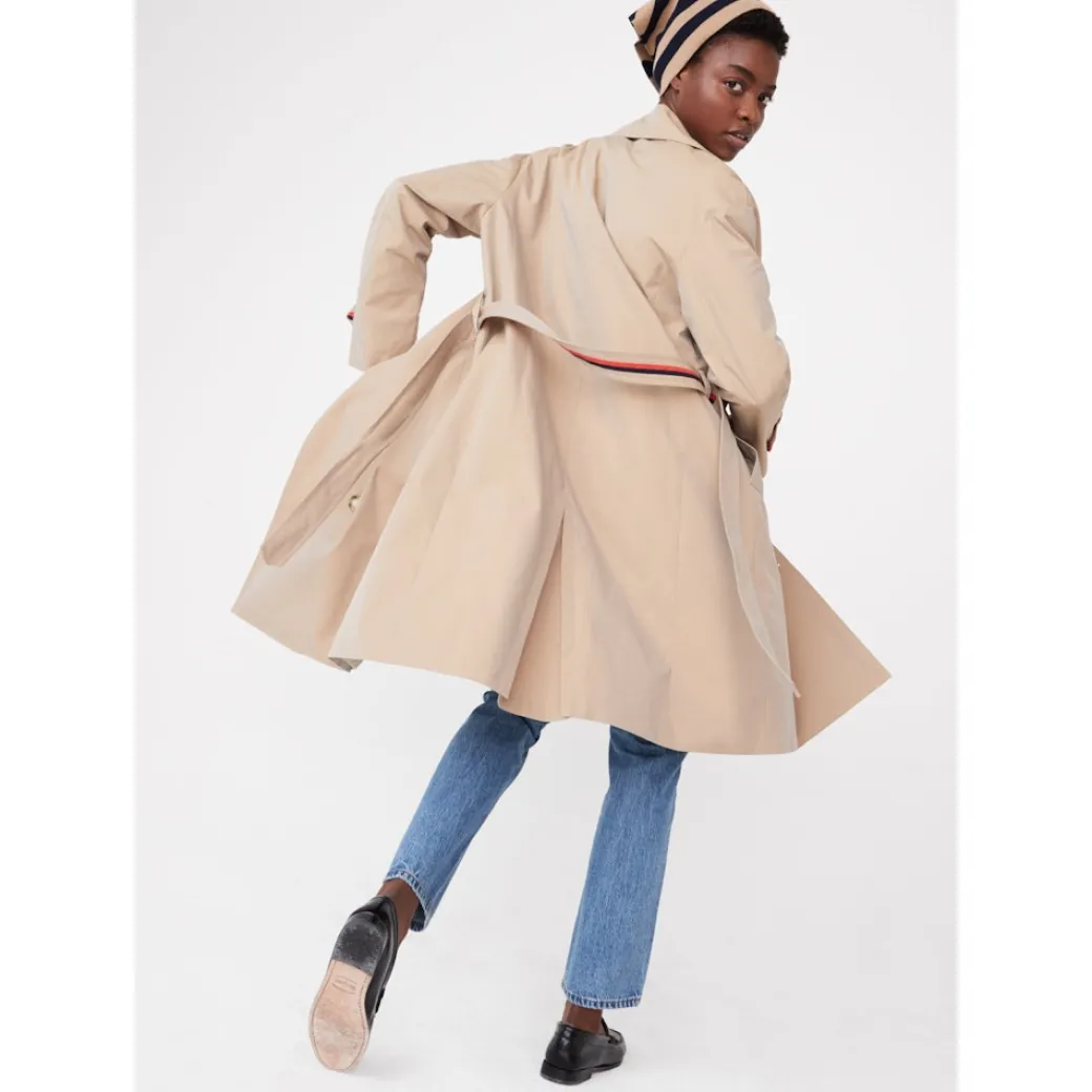 If you ever see Nikki Kule in Spring or Fall, you’ll see her wearing a chic trench coat. The woman knows outerwear. So, she decided to make The Perfect Trench Coat. Our version is beautifully cut from Italian fabric and includes signature KULE details, like our double stripe at the cuffs, behind the belt, and a striped lining. The shoulder and body is slightly looser than previous versions, so it feels a little louche and luxe.