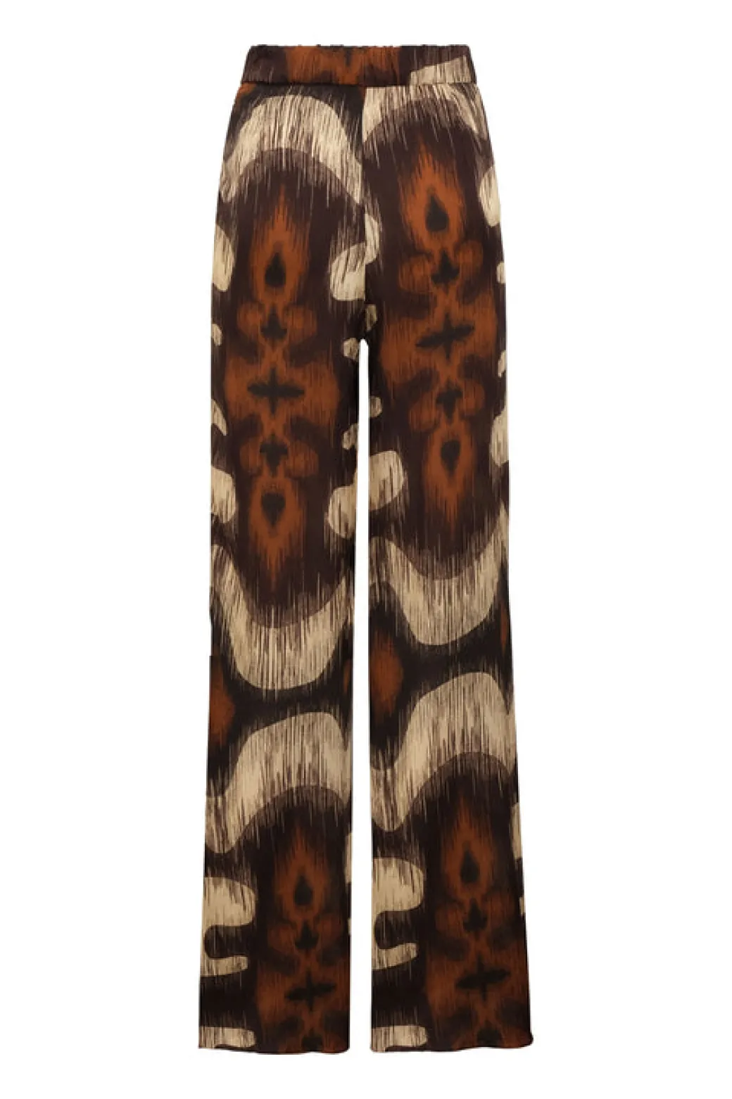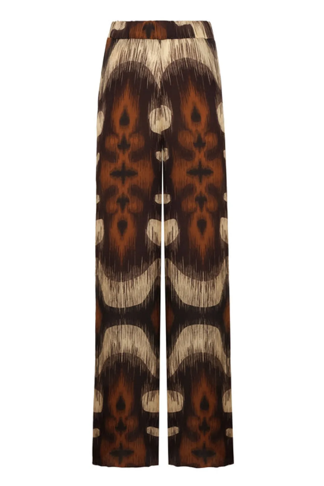 Grounded in simplicity and ease, the San Benito Pant features a flattering high waist and comfortable wide legs, featuring bold Brown Ikat print. Wear it with your favorite bikini top or the Tomaso Shirt for the perfect look.