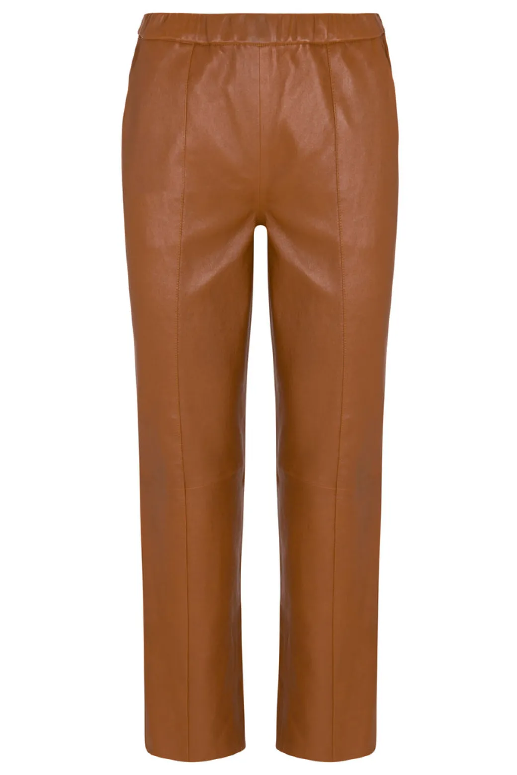 A classic cigarette silhouette pant, made in our signature stretch-leather, are effortlessly chic and easy to wear. Designed for a relaxed fit with a comfortable elastic-stretch waistband and a raw hem. These pants are tailored with pintucks down the front and back for a naturally elongating look that can be worn for any occasion.