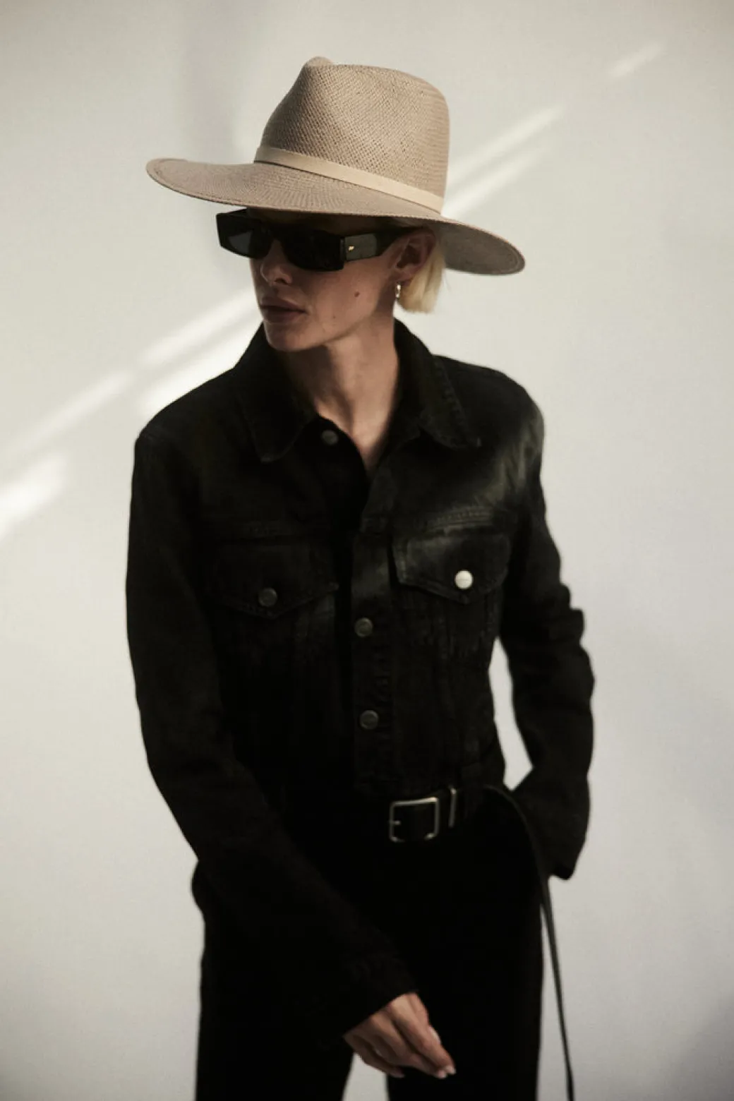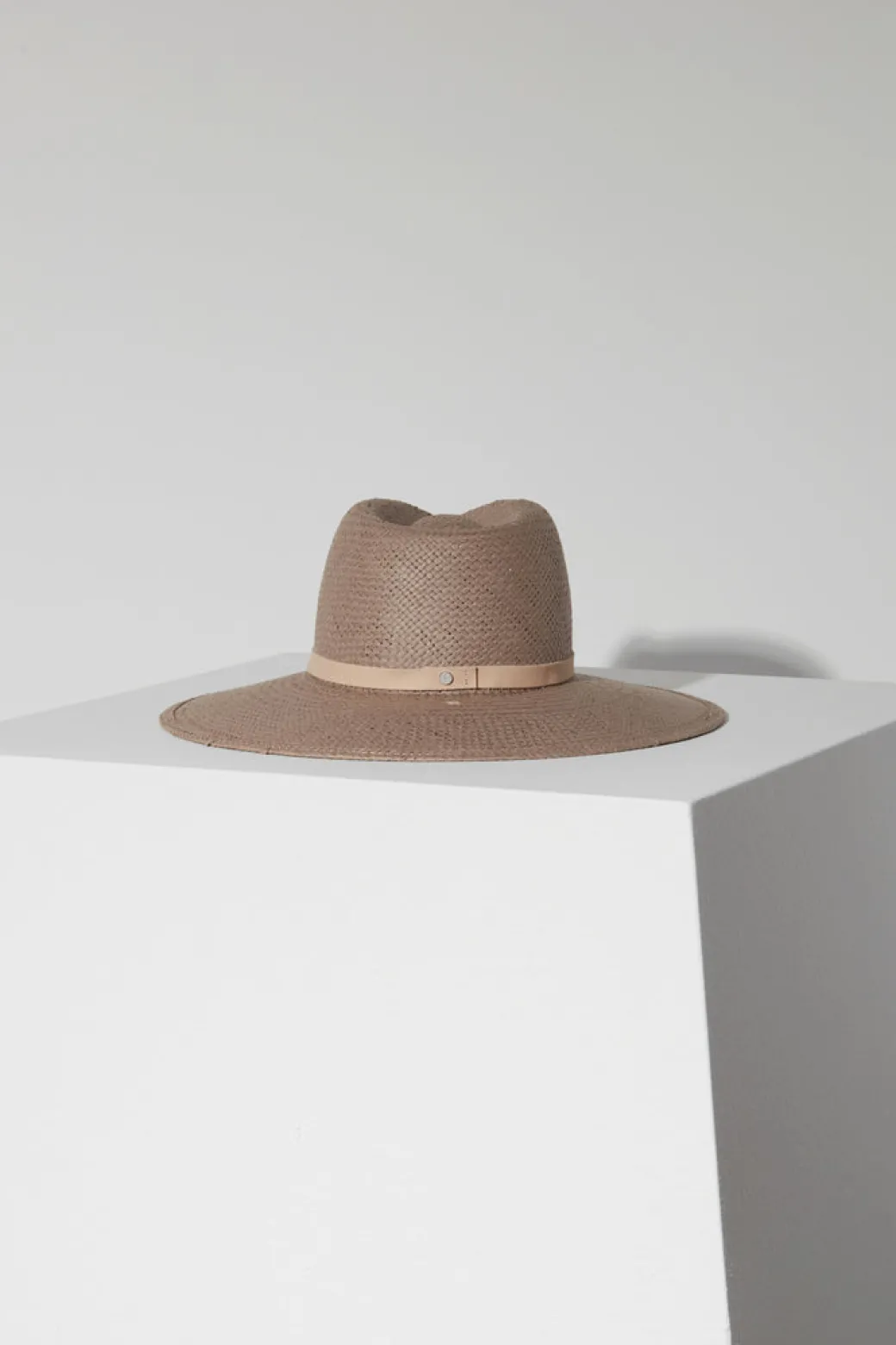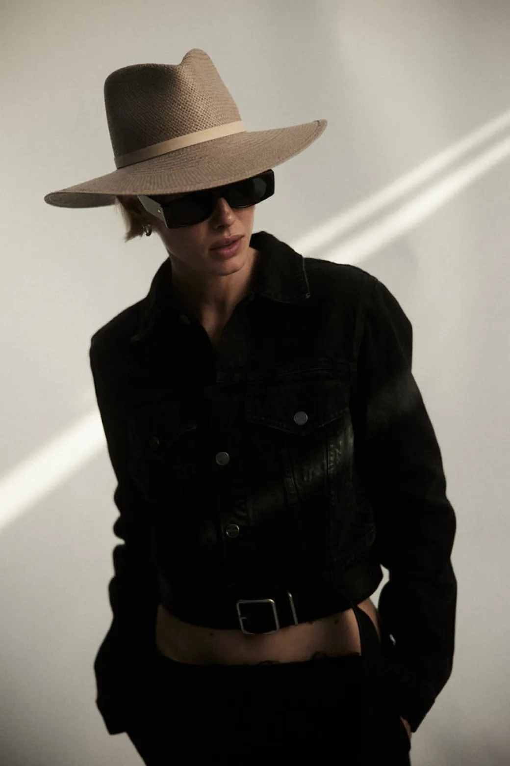 A modern take on the classic fedora made with grey straw and beige detailing. This effortless piece can easily be worn year-round. The quality can be seen in the beautifully structured crown and wide brim. This packable fedora is meant for traveling with you wherever you go whether in a suitcase, a purse, or beach bag.