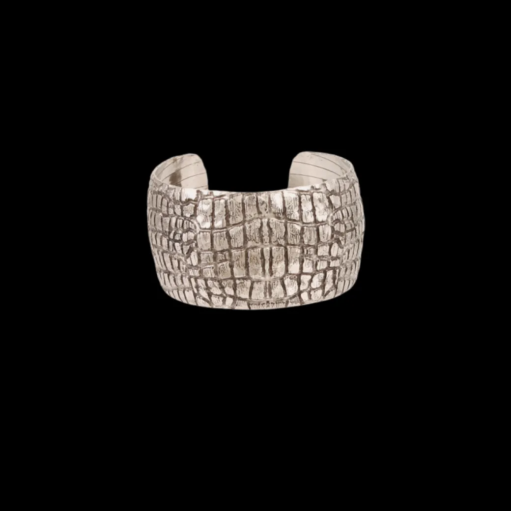 Our Wild collection takes you to a wild savannah, thanks to the irregular patterns of a real skin redrawn by hand, engraved then hammered by our craftsmen on a satin gold and silver plated metal.